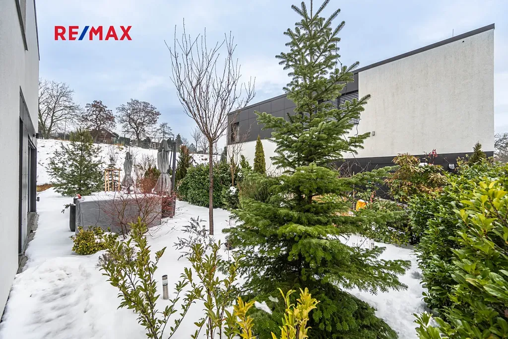 K domu náleží dvě terasy, zařízeny jsou moderním venkovním nábytkem a stíněním. Zahrada se vzrostlou zelení je téměř bezúdržbová, k dispozici je také sezónní bazén a moderní gril.