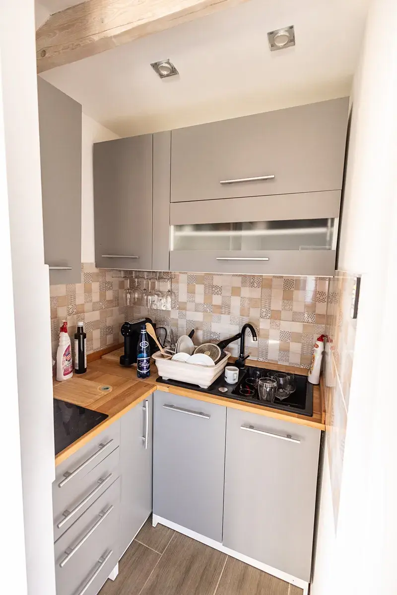 Malá kuchyně je vybavena všemi základními spotřebiči.