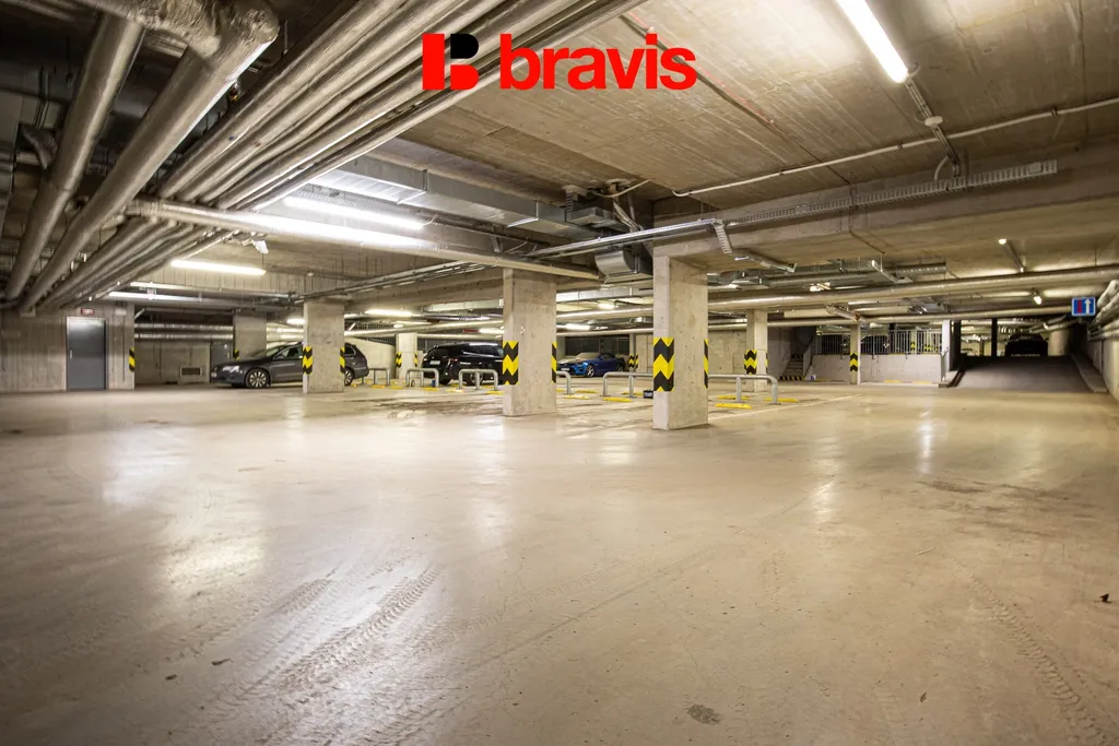 Možnost pronájmu vyhrazeného parkovacího stání v podzemních garážích domu za cenu 2.200 Kč měsíčně.