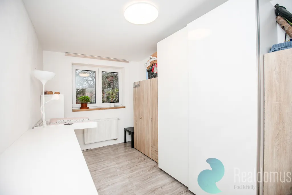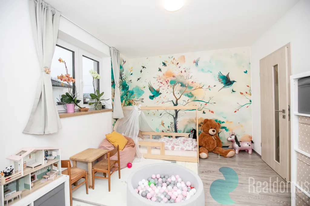 Hned vedle vejdete do dětského pokoje (13,5 m²) – děti budete mít vždy na dosah. A do poslední místnosti, která poslouží pro hosty nebo pro děti.