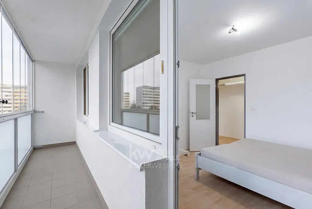 - Zasklená lodžie s přístupem z hlavní ložnice umožňuje pohodlné sušení prádla a díky zasklení je čistá po celý rok.