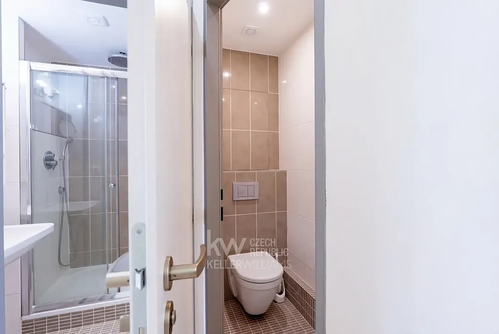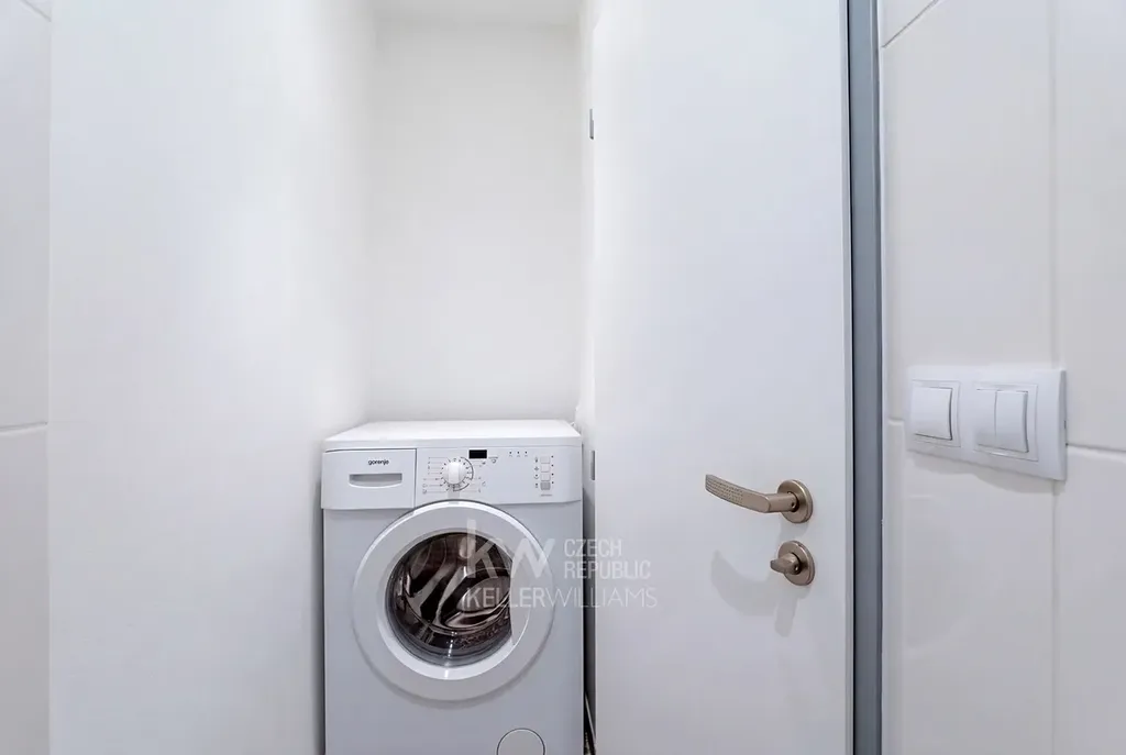 - Toaleta je samostatná. A je zde výklenek pro pračku.