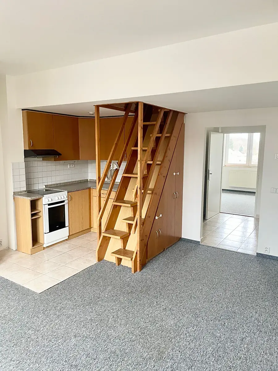 Hezký světlý byt ve třetím patře řadového rodinného domu pár minut chůze od stanice metra Kobylisy. V bytě je obývák s kuchyňským koutem, samostatná ložnice a pokoj se zkoseným stropem do kterého vedou schůdky z obýváku. Dále je v bytě koupelna a samostatná toaleta. Byt má svůj plynový kotel. Cena 19000+cca 4000,Kč poplatky a energie. Vratná kauce 22000,Kč, odměna pro realitní kancelář 19000,Kč. Volný ihned.