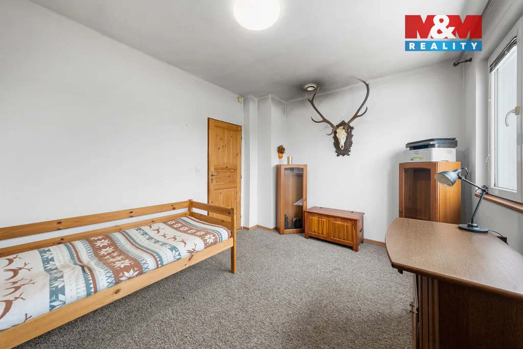V tomto domě by se neztratil ani Hajný Robátko, protože v některých místnostech by měl jasné indicie - parohy. Buď jak buď, hledáte-li dům se stylem, dům, kde je vše, skvělé bydlení, klid, příroda, udírna, gril, garáž, sklep, podkroví navíc, a kde nemusí zůstat kámen na kameni, tak na Kamenném pahorku v Košťanech jste ve správný čas na správném místě. Vybavený rodinný dům dispozičně řešen jako 3kk přímo volá: Marečku, podej mi metr a udělej ze mě, z podkroví, další pokoj. Domu rozhodně nechybí atmosféra, vkus, vše laděné do dřeva, přírodnin, přesně ve stylu lesa, ve stylu hajného, a přitom tak moderní, oku lahodné. Hajný možná je nebo byl lesa pán, ale zde v kuchyni zcela jasně vládne Červená Karkulka a její dominantní styl, který tomu všemu dodává tu správnou šťávu. Tohle si musíte vychutnat plnými doušky a nemusíte se bát vlka, nic. Ten se nepřiblíží ani k domu, natož k luxusnímu golfovému resortu či věhlasnému jezeru Barbora. Neváhejte a domluvte si prohlídku ještě dnes.