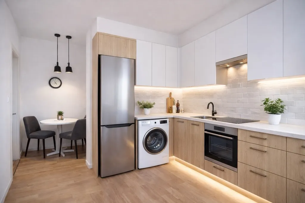 Dispoziční řešení je praktické, vzdušné a funkční – ideální pro jednotlivce, pár i menší rodinu.