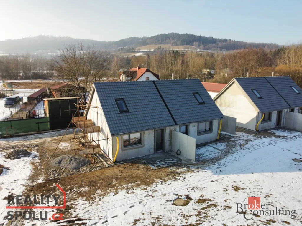 Prakticky řešený zděný dům nabízí v přízemí obývací pokoj s kuchyňským koutem, ložnici a koupelnu. V patře přístupném po dřevěném schodišti jsou pak další dvě místnosti. Je osazen izolačními trojskly, na podlahách najdeme dlažbu a vinyl. Samozřejmostí je zateplená fasáda i střecha, v přízemí je rekuperace. Koupelna se sprchovým koutem je velmi moderně navržena, je zde místo také pro pračku. Dům je vytápěn elektrickým podlahovým topením a je zde také komín k instalaci případných krbových kamen. Ohřev vody zajišťuje bojler. Dům je vedle elektřiny napojen na veřejný vodovod a kanalizaci, k dispozici je též datová přípojka. Zájemci si aktuálně mohou vybrat z prvních dvou domů, jejichž kolaudace proběhne v červenci 2026.