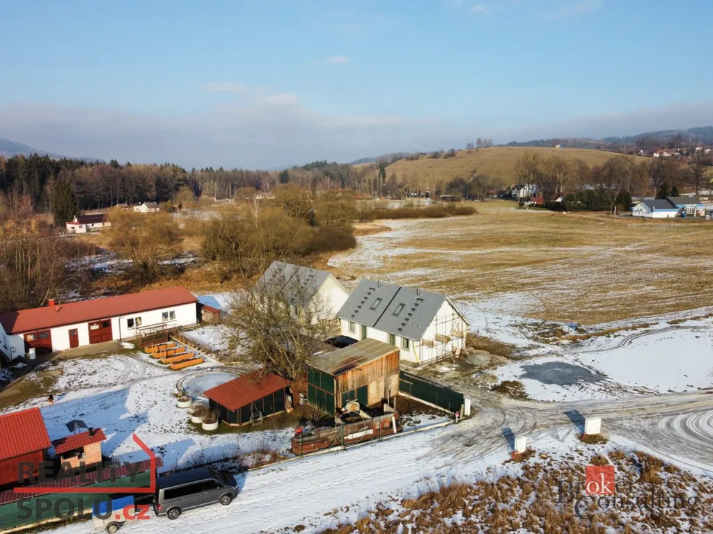 Na prodej zcela nový řadový rodinný dům v Dlouhé Vsi u Sušice. V nabídce máme aktuálně dva ze čtyř rodinných domů v rámci projektu Bydlení v Lukách, které leží na kraji obce Dlouhá Ves, nedaleko řeky Otavy a cyklostezky vedoucí do Sušice.