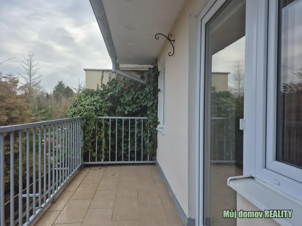 V patře jsou tři ložnice, každá s přístupem na balkon, dále menší pracovna a koupelna s WC a pračkou. Obytné místnosti jsou orientovány převážně na jih, díky čemuž je dům velmi světlý a nabízí příjemné výhledy do zeleně. Ulice je tichá, bez rušivého provozu.