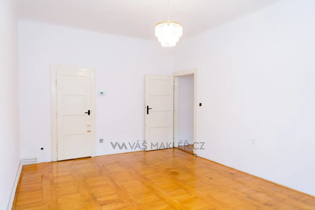 Podlahy: Zachovalé parkety, které po přebroušení získají zpět svůj původní lesk a hodnotu.