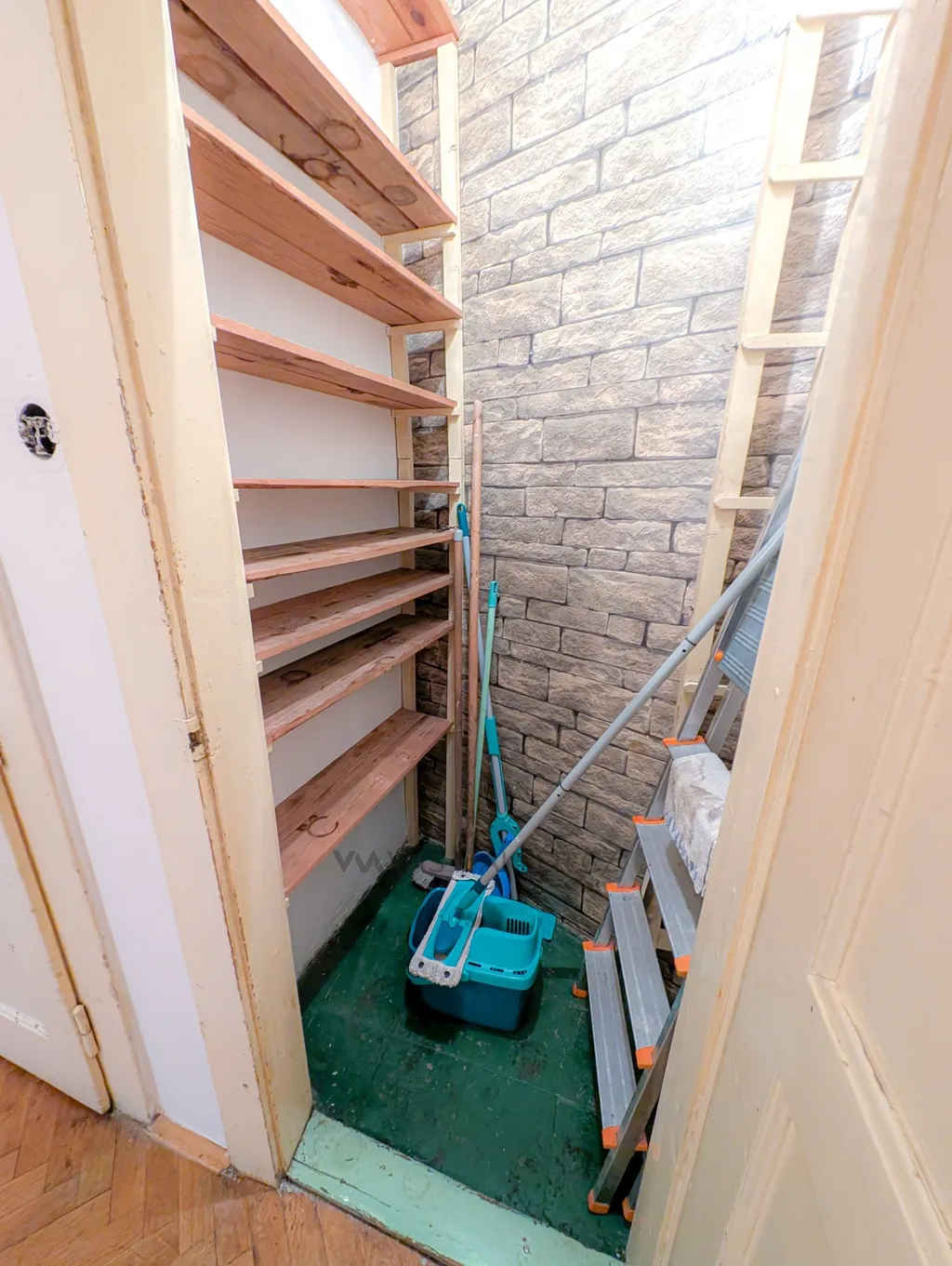Kuchyně s pokojem pro služku: Kuchyně orientovaná do vnitrobloku disponuje přilehlou menší místností (bývalý pokoj pro služku). Tento cenný prostor navíc je ideální pro vybudování tiché pracovny, šatny, pokoje pro hosty, nebo pro zvětšení kuchyňského zázemí.