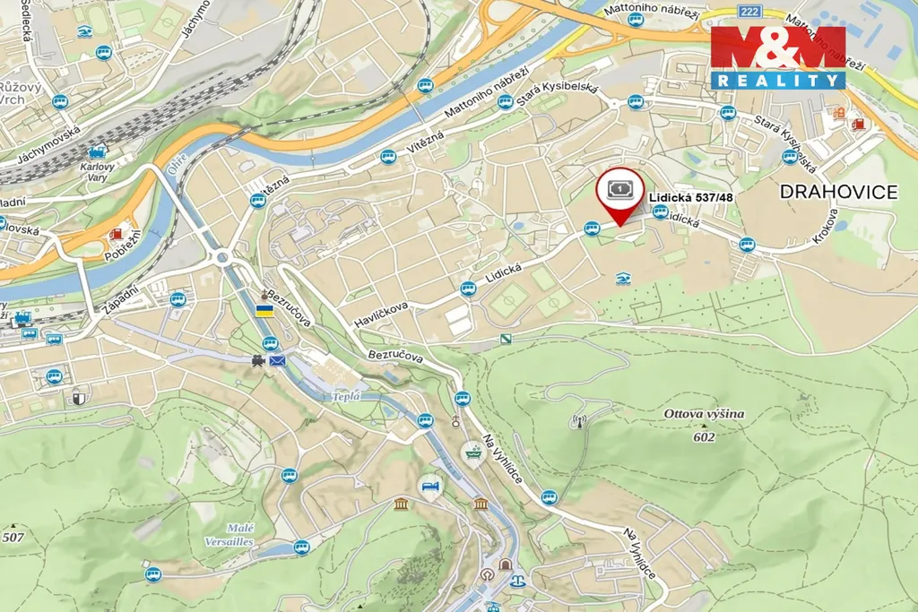 Nabízíme k prodeji prostorný byt 4+1 s garáží o užitné ploše 115 m² ve vyhledávané lokalitě Karlovy Vary – Drahovice. Byt se nachází ve 3. patře zděného a udržovaného bytového domu. Dominantou bytu je velký slunný obývací pokoj s krbem a francouzským oknem, který vytváří příjemnou atmosféru rodinného bydlení. Balkón je přístupný z kuchyně. Byt je v původním stavu, určený k rekonstrukci dle vlastních představ, což nabízí ideální příležitost vytvořit si moderní bydlení v jedné z nejžádanějších částí města. Součástí jsou vestavěné skříně, sklep a významným benefitem je vlastní garáž. K domu náleží také podíl na zahradě za domem, vhodný k relaxaci. Lokalita nabízí kompletní občanskou vybavenost, klidné prostředí a výbornou dostupnost do centra. Byt s velkým potenciálem, který se na trhu objevuje jen zřídka.