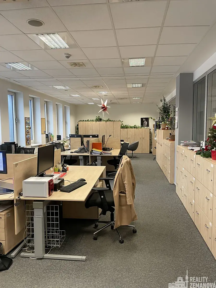 kancelářské prostory, několik vlastních WC, kuchyňka, technické zázemí (kopírky, tiskárny apod.), kompletní datové a internetové rozvody