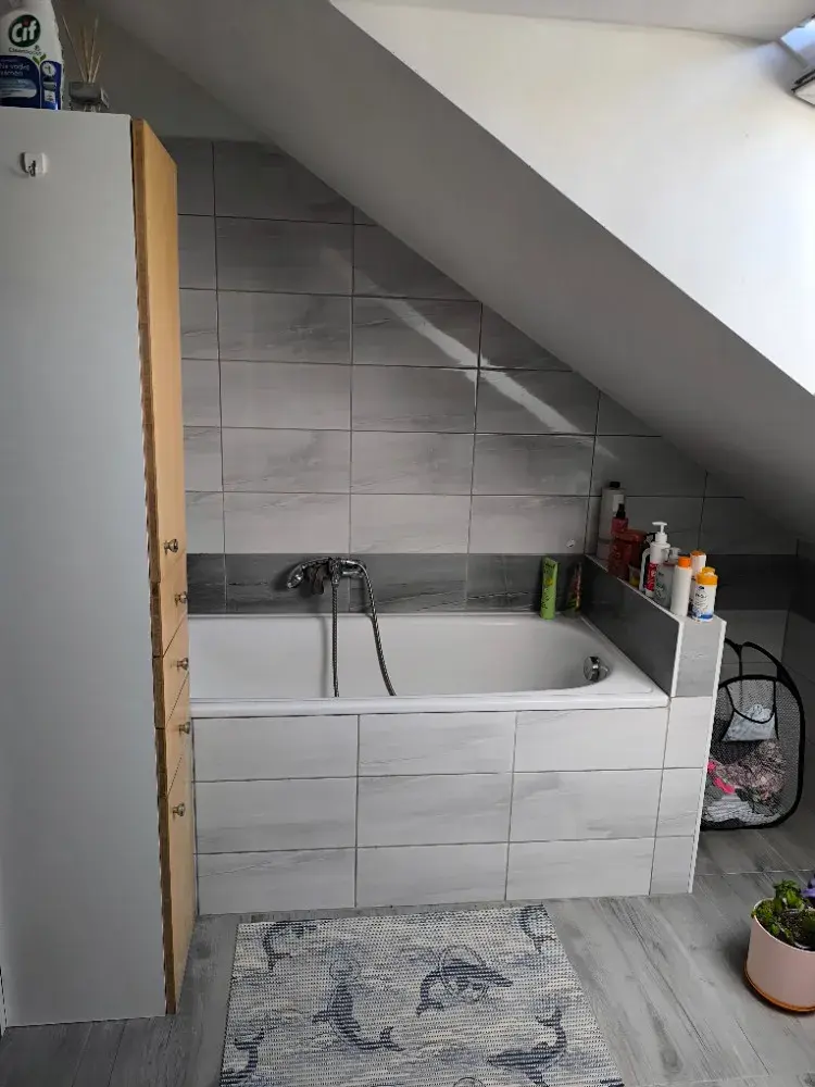Nabízíme k prodeji novostavbu podkrovního bytu o dispozici 2+kk o podlahové ploše 69 m², který se nachází ve 2. patře bytového domu. Byt prošel kolaudací v roce 2021 a představuje tak moderní bydlení se zárukou kvality a nízkých provozních nákladů. Tato bytová jednotka byla navržena s důrazem na vysokou energetickou efektivitu a akustický komfort. Stěny i podlahy disponují nadstandardní 30cm izolací z vaty. Podlahy jsou tvořeny tlumicí kročejovou izolací (20mm), mirelonem a plovoucí podlahou, položenou na latích a dvou vrstvách OSB desek (25 mm). K dobré izolaci přispívají také třískelná střešní okna. Vstupní zeď do bytu tvoří masivní 30cm Ytong. Příčky v bytě jsou sádrokartonové. Bezpečnost zajišťují protipožární kovové vstupní dveře. Vytápění je řešeno elektrokotlem s radiátory, který je možné doplnit krbovými kamny. Do domu je zaveden také plyn. Pravidelné měsíční náklady - fond oprav 1000,-Kč/měs., zálohy na elektřinu 3700,-Kč/měs., voda1000,-Kč/měs. Dům je po částečné revitalizaci. Byly vybudovány nové odpadní stoupačky. V roce 2020 byla udělána nová střecha s betonovou taškou, novými svody a kominickou lávkou. Společenství vlastníků má v dohledném časovém horizontu v plánu zateplení fasády celého bytového domu. K bytu náleží prostorný sklep o velikosti 8–10 m². Velkou výhodou je možnost užívání pozemku u domu (zahrady). Pro bezproblémový příjem signálu je k dispozici společná TV anténa (pro 3 byty) a internet O2/pevná linka. Parkování je komfortně vyřešeno, k dispozici jsou až 4 parkovací místa přímo u domu. Schodiště do patra je kovové s dřevěnými nášlapy. Město Hořovice disponuje veškerou občanskou vybaveností. Výborná dostupnost dálnice D5 (Praha - Plzeň) - exit 34 - 3km.