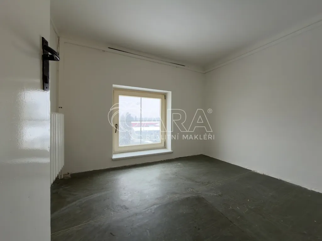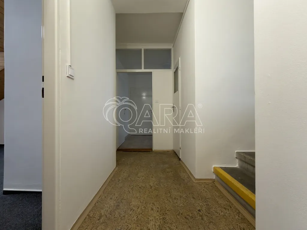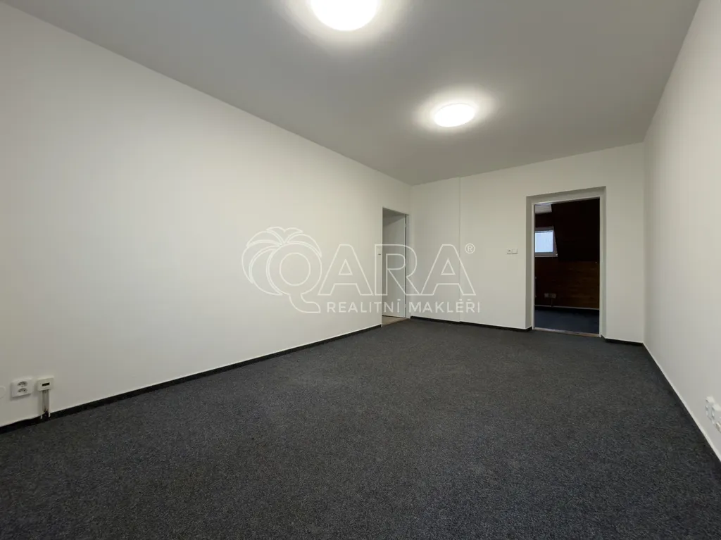 Podlahová plocha jednotky je 78,4 m² a nachází se ve 2. a 3. NP v administrativním objektu (výtah není k dispozici). Skládá se z předsíně, ze které je přístupný první pokoj. Dále je z předsíně přístupná kuchyně, která je zařízena menší kuchyňskou linkou a elektrickou troubou se sporákem, další spotřebiče nebudou součástí nájmu. Z kuchyně je vstup do koupelny, která nyní prošla rekonstrukcí a je vybavena sprchovým koutem, umyvadlem a skříňkou pod umyvadlem. WC je samostatně. Dále jsou k dispozici dva pokoje, které jsou vzájemně průchozí. Jednotka se pronajímá nezařízená, tím pádem si ji můžete zařídit dle svých vlastních představ.