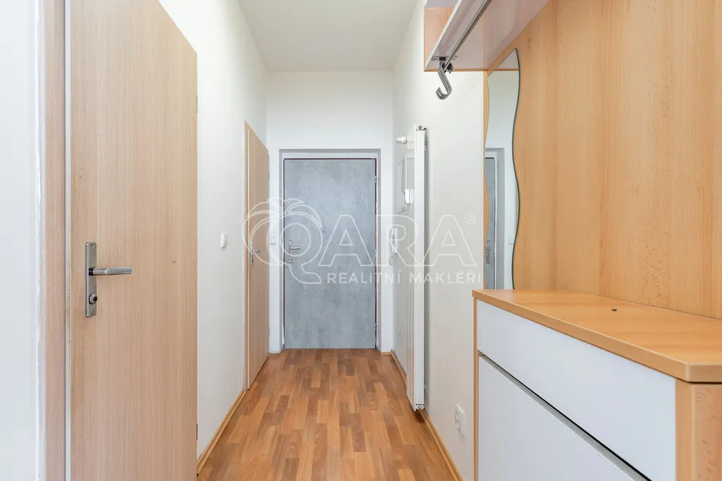 Podlahová plocha bytu je 38,8 m² a nachází se v 7. NP cihlového domu z roku 2009 (výtah je samozřejmostí). Skládá se z předsíně o výměře 4,31 m², ze které je přístupná kuchyně spojená s obytnou částí, která má výměru 29,27 m². Je vybavena kuchyňskou linkou se spotřebiči (elektrická trouba se sporákem, digestoř, lednice s mrazákem, myčka). Disponuje terasou o výměře 5,02 m². Z předsíně je také přístupná koupelna a samostatné WC, přípojka na pračku a dostatek místa i na sušičku je samozřejmostí (tyto spotřebiče nejsou součástí nájmu). K dispozici je také samostatný sklep o výměře 3,75 m².