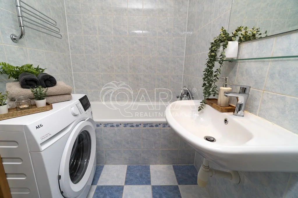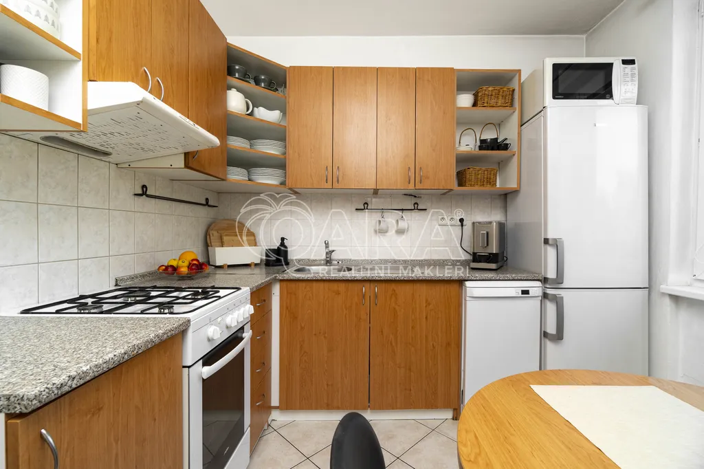 Byt má praktické dispoziční řešení: tři neprůchozí pokoje, světlý obývací prostor s posuvnými dveřmi, kuchyni, koupelnu a WC odděleně a také kumbál, který skvěle poslouží jako další úložný prostor. Zasklená lodžie je ideální pro relax nebo dětský koutek. Byt se prodává včetně zařízení (nebo po domluvě), stačí se jen nastěhovat. Dále bych vyzdvihl bezproblémové parkování před domem, které se už moc často nevidí.
