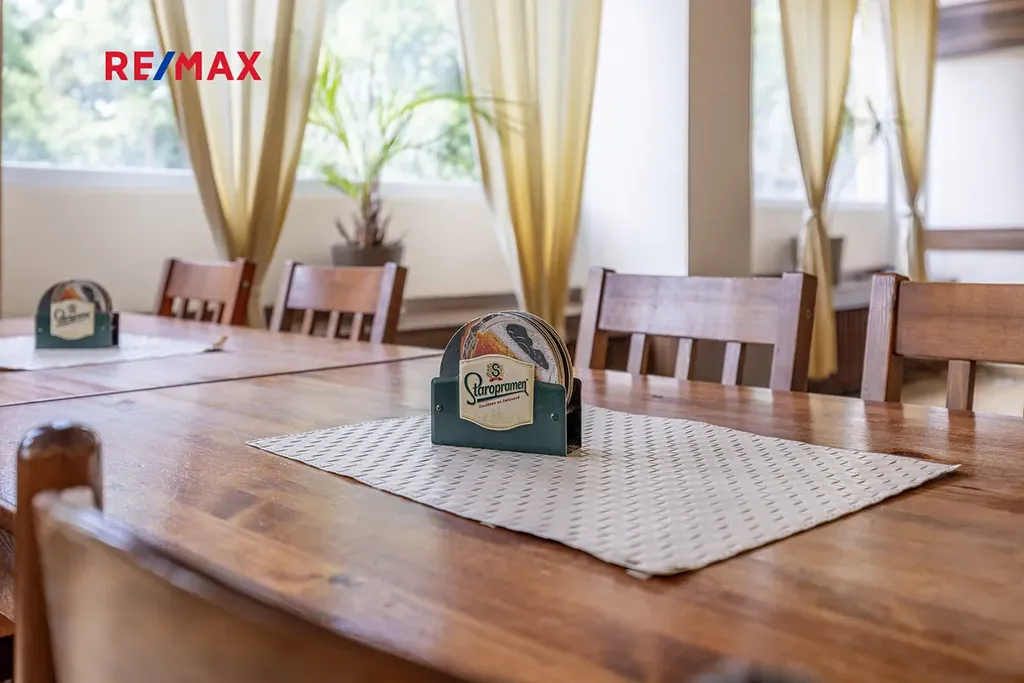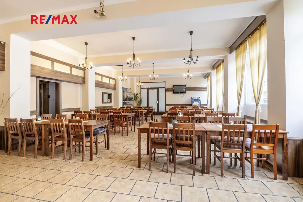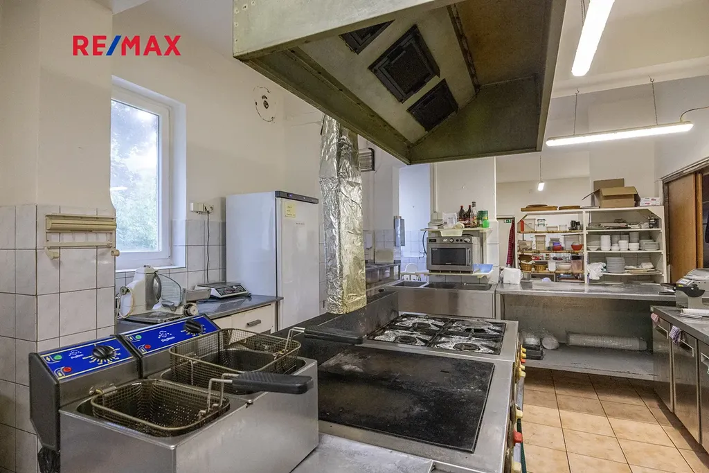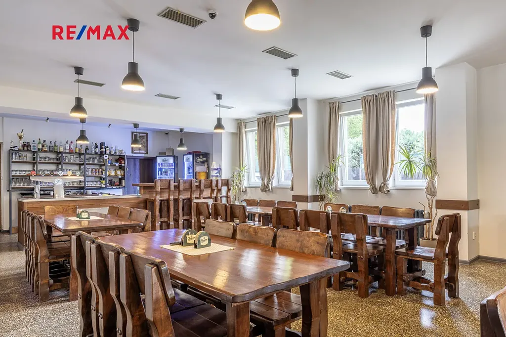 Ve výhradním zastoupení nabízíme k prodej dvoupodlažní komerční objekt s restaurací o celkové podlažní ploše přes 790m² (přízemí 470m², suterén 205m², terasa 115m²).