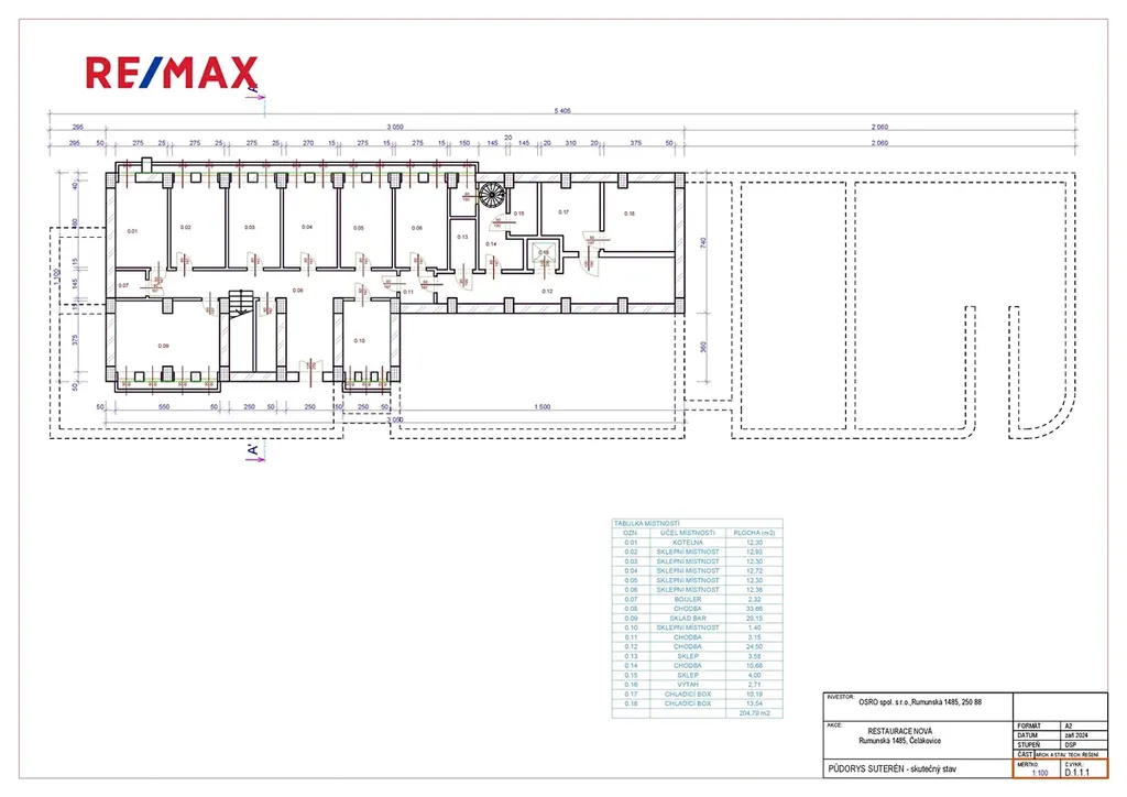 Základní charakteristika stavby: Jedná se o dvoupodlažní objekt stávající se z přízemí a částečným podsklepením. Konstrukční systém je středně montovaný skelet s plochou střechou. Objekt je napojen na veřejné sítě tech. infrastruktury: elektro, plyn, voda, kanalizace...)