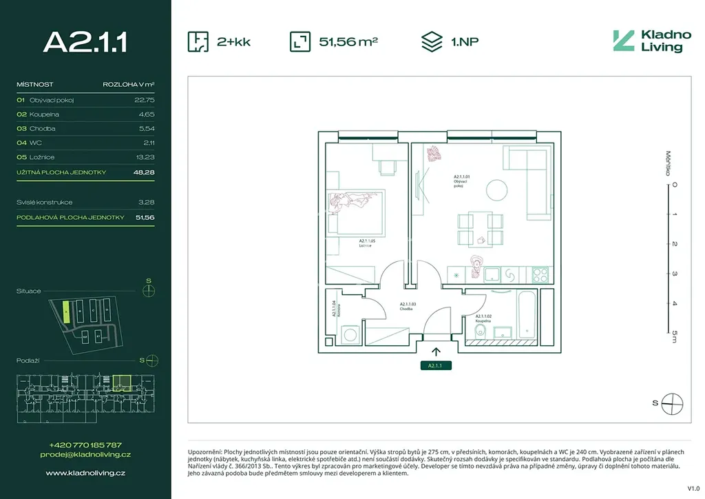 Nabízíme ke koupi moderní byt 2+kk o podlahové ploše 51,6 m² v rezidenčním projektu Kladno Living, který vzniká v jedné z nejatraktivnějších lokalit města Kladno – Kročehlavy. Tento nový developerský projekt představuje jedinečnou příležitost pro ty, kteří hledají nové byty v Kladně nebo investici do nemovitosti s vysokým potenciálem zhodnocení.