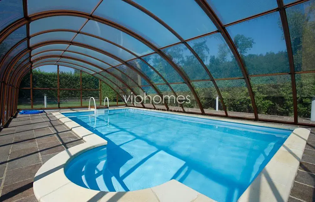 Venkovní krytý vyhřívaný bazén, mramorové obklady a dlažba, velká okna s nádherným výhledem, dubové podlahy, vytápěná dlažba v koupelnách, efektní vodovodní a sprchové baterie, luxusní kuchyň, vestavěné skříně, WiFi internet, video intercom, alarm. Celý dům je klimatizován.