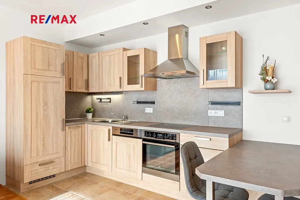 Byt prošel čerstvou kosmetickou rekonstrukcí a je ve výborném stavu. Dispozice je praktická a vzdušná: obývací pokoj s kuchyňským koutem a přímým vstupem na velkou terasu (jih), ložnice (západ), koupelna s vanou, samostatné úložné prostory. Byt je výjimečně teplý a slunný díky jižní orientaci a kvalitní tepelné izolaci domu, což se pozitivně odráží i na nízkých nákladech na vytápění. Velká okna zajišťují dostatek denního světla po celý den. Výhled je otevřený, klidný a nerušený.