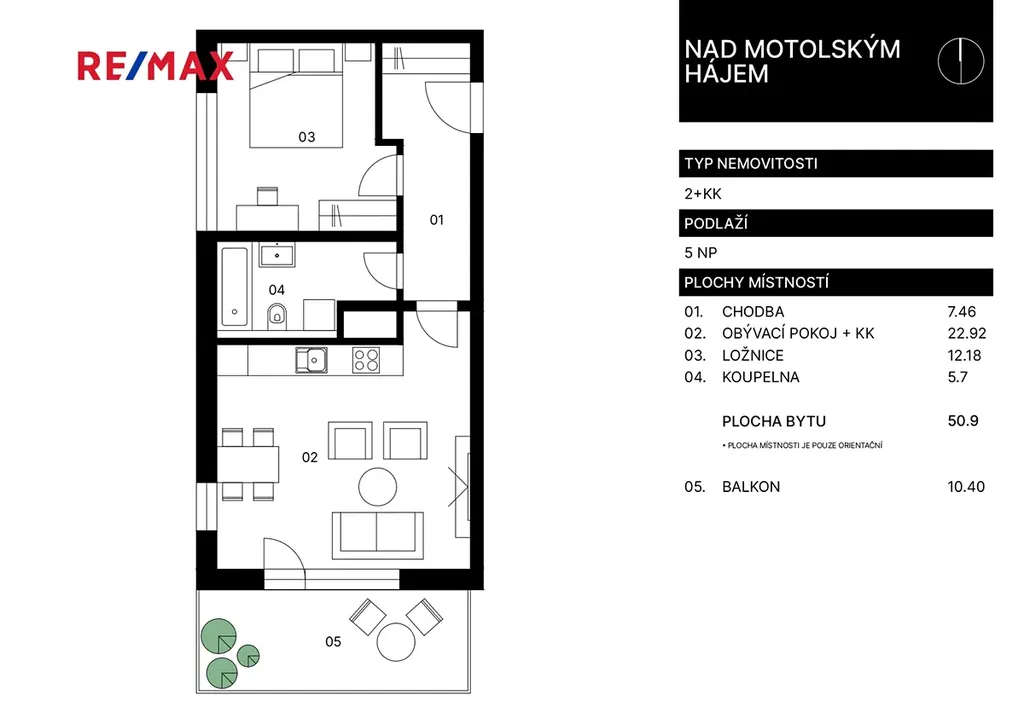 Nabízíme k prodeji světlý a velmi příjemný byt 2+kk o ploše 50,9 m² s prostornou terasou a krásným otevřeným výhledem, orientovaný na jih.