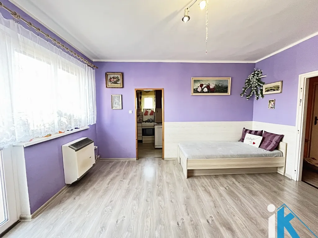 Byt má vstupní chodbu, WC, obytný pokoj cca 19m2, samostatnou menší kuchyň a sprchový kout.