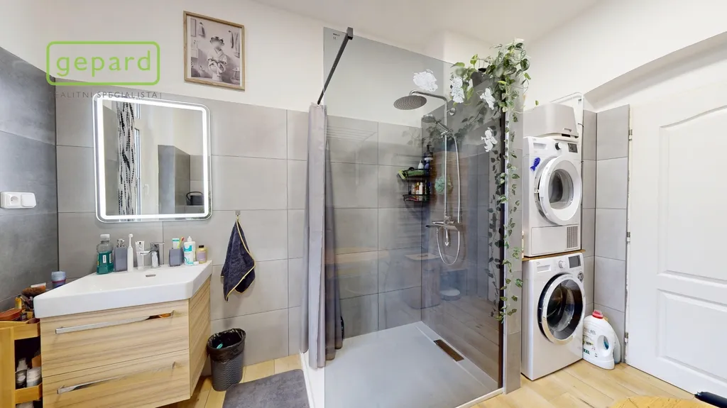Obývací místnost s velkorysým prostorem jako středobod tohoto krásného bytu vybízí ke svolání celé rodiny na společně strávený čas a disponuje dostatkem prostoru pro vybavení dle vašich představ a přání. Můžete si vybrat, zdali budete vytápět plynem a užívat si beztarostný život s topením či využítat kotel na dřevo s výměníkem a užít si praskající potěšení (uskladnění dřeva na zahradě přímo u domu). V kuchyni přijde vhod podlahové topení. Byt dále nabízí další samostatný pokoj, který je vhodný jako ložnice, dětský pokoj, pracovna či pokoj pro hosty. Velkorysá předsíň vybízí k odkládání všeho potřebného se zabudovanou skříní a komorou.