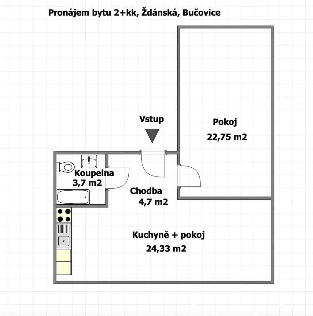 - samostatný pokoj: 22,75 m²