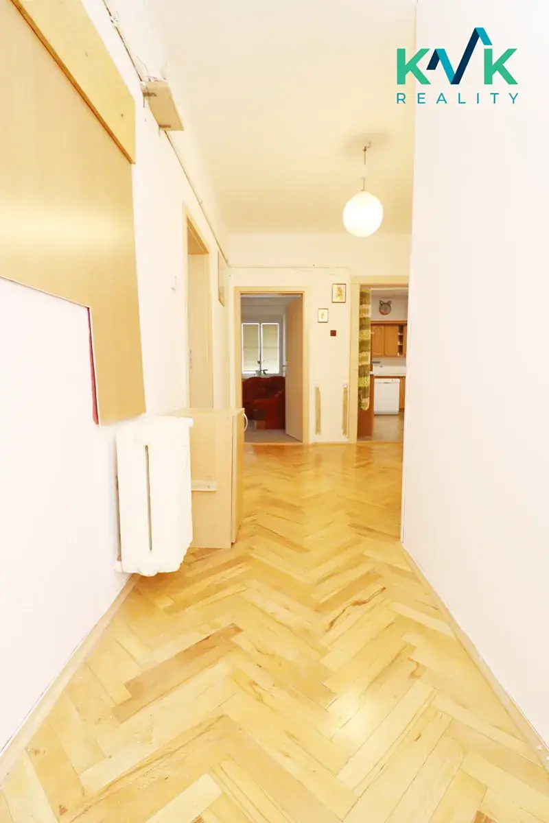 Byt má prostornou chodbu, která zajišťuje pohodlný přístup do všech místností. Proběhla částečná rekonstrukce elektroinstalace, okna jsou plastová. V obytných místnostech jsou parkety, v kuchyni je lino. Na chodbě proběhla renovace parket, ostatní parkety jsou v zachovalém stavu.