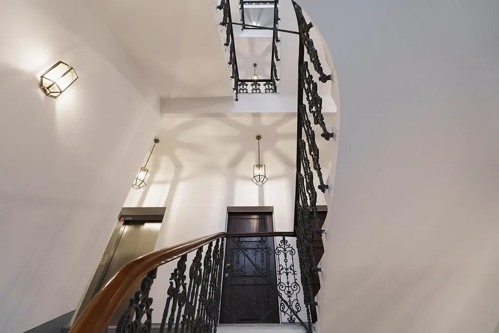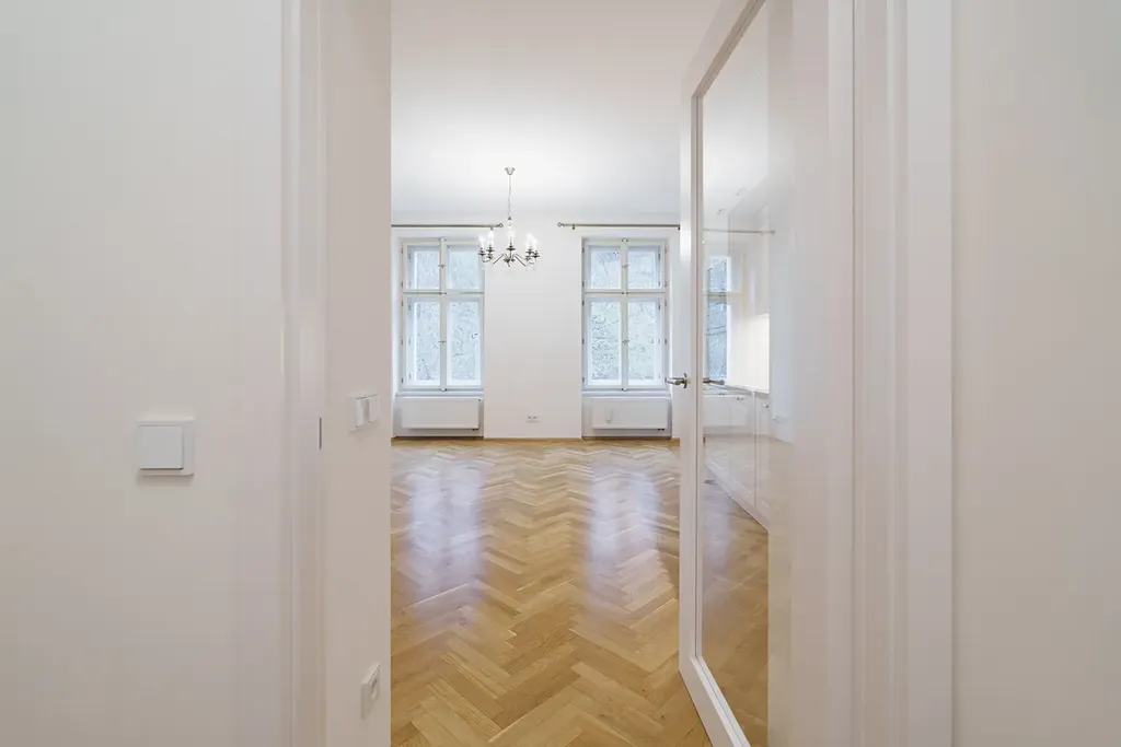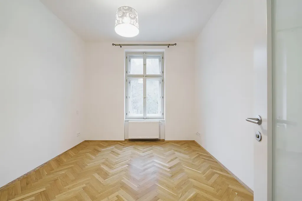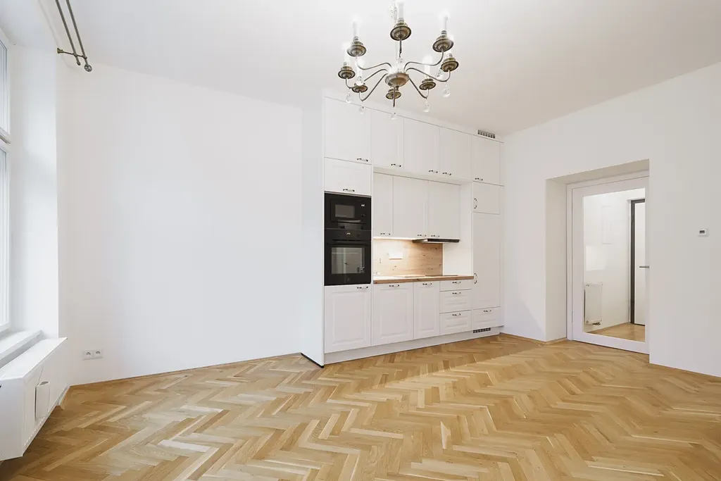 • Při rekonstrukci byly použity vysoce kvalitní materiály, přičemž zároveň zůstaly zachovány původní architektonické prvky, které dodávají bytu jedinečný charakter.