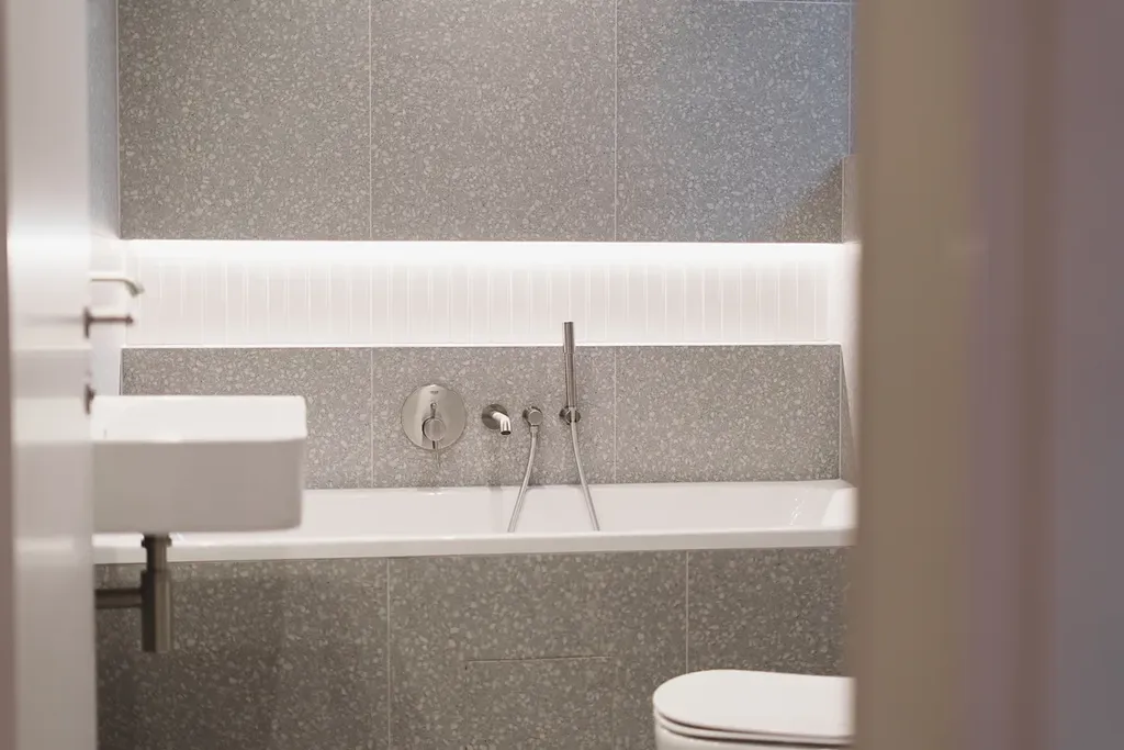 • Moderní koupelna s kvalitní sanitou a nadstandardním provedením.