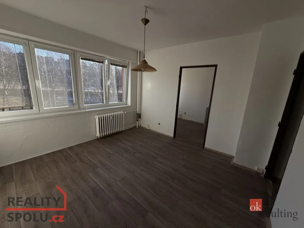 K vybavení patří kuchyňská linka, kterou je třeba přimontovat, a starší vestavěná skříň v předsíni. V bytě jsou nutné drobné úpravy podle vlastního vkusu.
