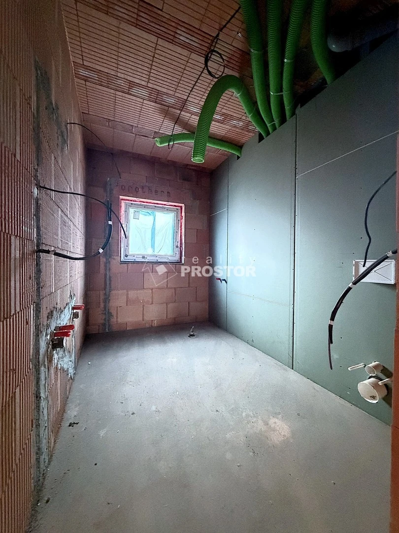V přízemí domu je prostorný obývací pokoj s kuchyňským koutem, jenž díky velkým francouzským oknům nabízí dostatek přirozeného světla a přímý vstup na zahradu s terasou orientovanou na jihovýchod. Dále je zde pokoj vhodný jako ložnice, pracovna nebo pokoj pro hosty, samostatné WC a praktická technická místnost vybavená tepelným čerpadlem (vzduch–voda), výlevkou a přípravou pro pračku i sušičku. V patře se nacházejí tři prostorné ložnice a komfortní koupelna s vanou a toaletou.