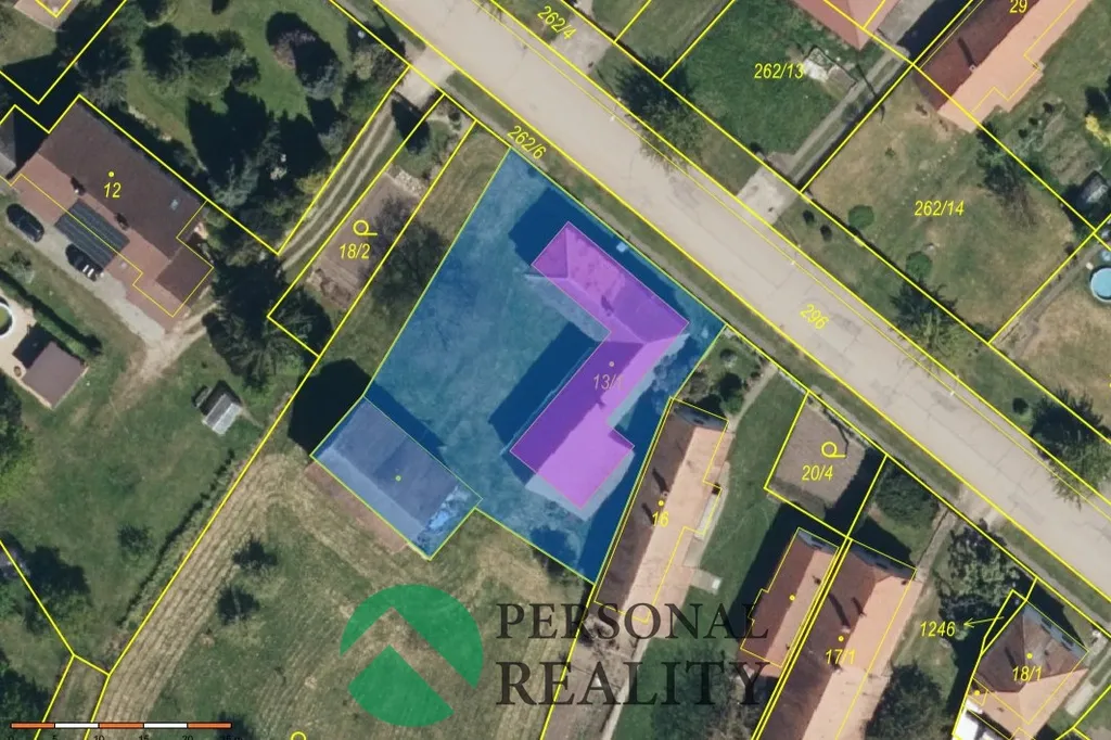 – Stavební parcela St. 13/1: 1 206 m², součástí stavba RD s č.p. 16 a původní stodola