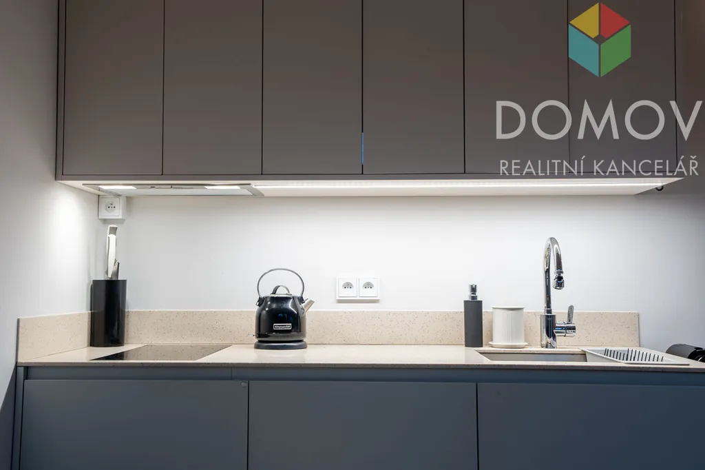 V nadstandardně zařízeném ateliéru s dispozicí 2+kk a celkové výměře 36,8 m2 byly použity kvalitní materiály, jako jsou dřevěné podlahy, masivní dveře, moderní koupelna (sanita značky Laufen), skandinávská svítidla, kuchyňská linka včetně spotřebičů.