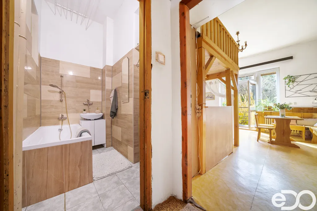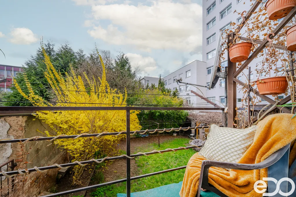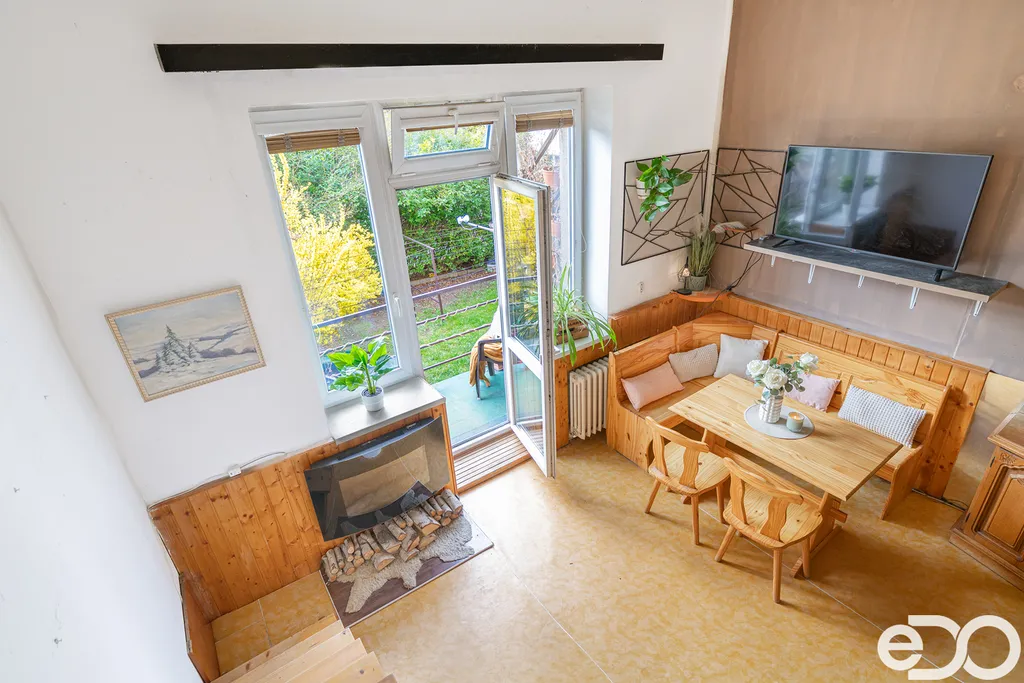 Byt má terasu s výhledem do zahrady, samostatné WC a koupelna jsou po rekonstrukci.