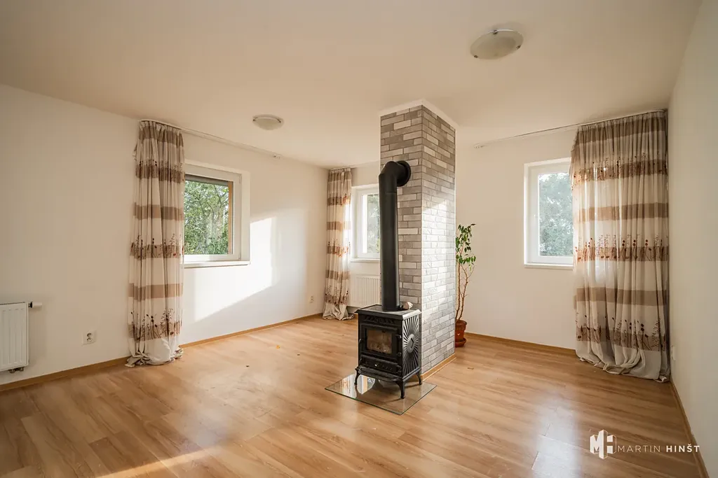 Dům je pronajímán částečně zařízený a nabídka zahrnuje veškeré potřebné vybavení, včetně kuchyňské linky se spotřebiči. Po vzájemné dohodě s majitelem je možné vybavení ještě doplnit dle vašich požadavků. V přízemí se nachází obývací pokoj, který je centrem rodinného života a samostatná kuchyň. První patro nabízí další tři pokoje, ideální pro ložnice či dětské pokoje. Dům je vybaven elektrickým kotlem, bojlerem a v každém patře jsou k dispozici kamna na tuhá paliva, což umožňuje úsporné vytápění.