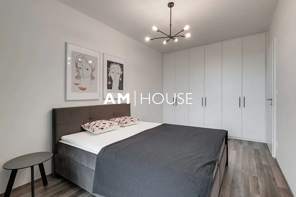 Dispozice jednotky se skládá z obývacího pokoje s vybavenou kuchyňskou linkou, jídelní soupravou, gaučem a Smart TV. Byt má koupelnu se sprchou, umyvadlem, WC, pračkou. Ložnice je vybavena posteli, vystavenou skříní, psacím stolem.