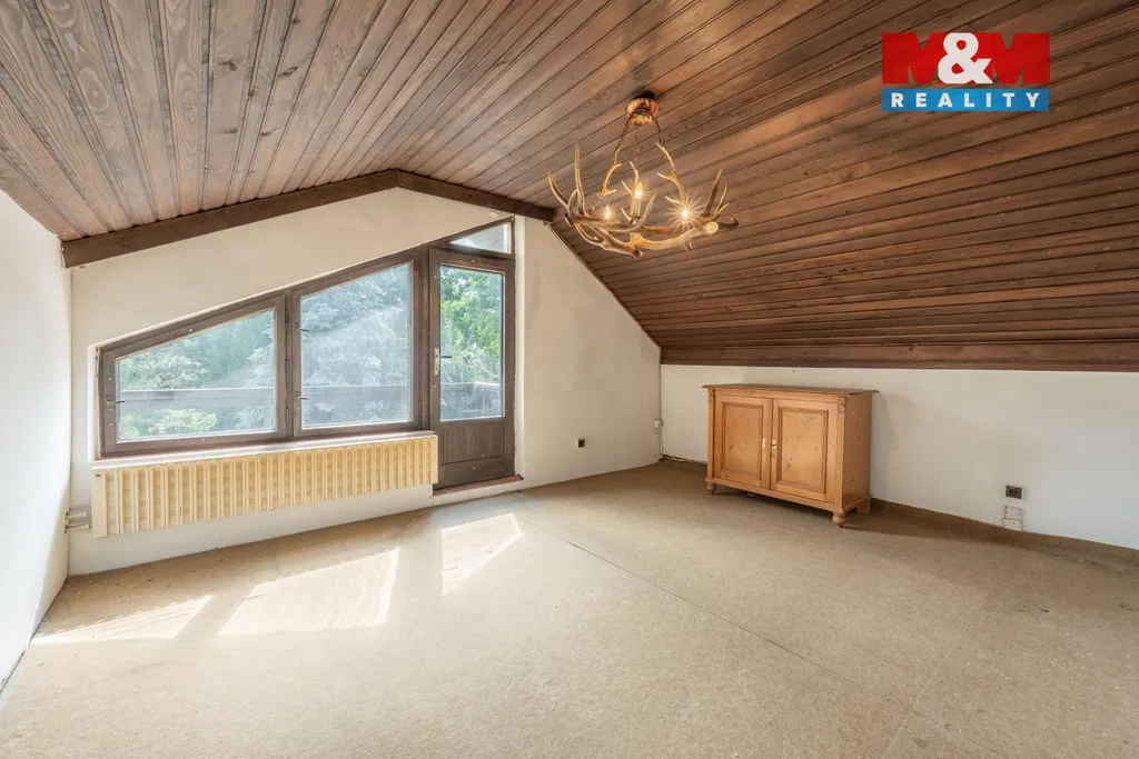 Chcete-li si užít oázy klidu a zároveň mít k dispozici dům s velkou užitnou plochou, bazén a krásné venkovní posezení s krbem, tak právě pro Vás je zde ideální nemovitost. Dům kousek od Řevničova o třech podlažích nabízí podlahovou plochu 152 m2, rozkládá se na pozemku o velikosti 753 m2 a dříve sloužil jako penzion. K těmto účelům je možné jej využít i nyní. V přízemí domu se nachází 2 pokoje, tech. místnost, kuchyň, koupelna, 2 x WC a rovněž vstup do sklepa, který má plochu 8 m2. V prvním patře domu se nachází 2 pokoje, jeden se vstupem na balkón a druhý na terasu. V podkroví je koupelna, šatna, 2 pokoje a balkón. Velikou devizou nemovitosti je zastřešené posezení s krbem a bazénem o velikosti 7 x 3,5 m. Dům má ještě k dispozici samostatnou místnost o velikosti 14 m2 (využitelnou např. jako dílna), druhý venkovní krb a udírnu. Nemovitost je v zachovalém stavu a je vhodná k rekonstrukci dle svých představ. Je možné ji využít pro vícegenerační bydlení.