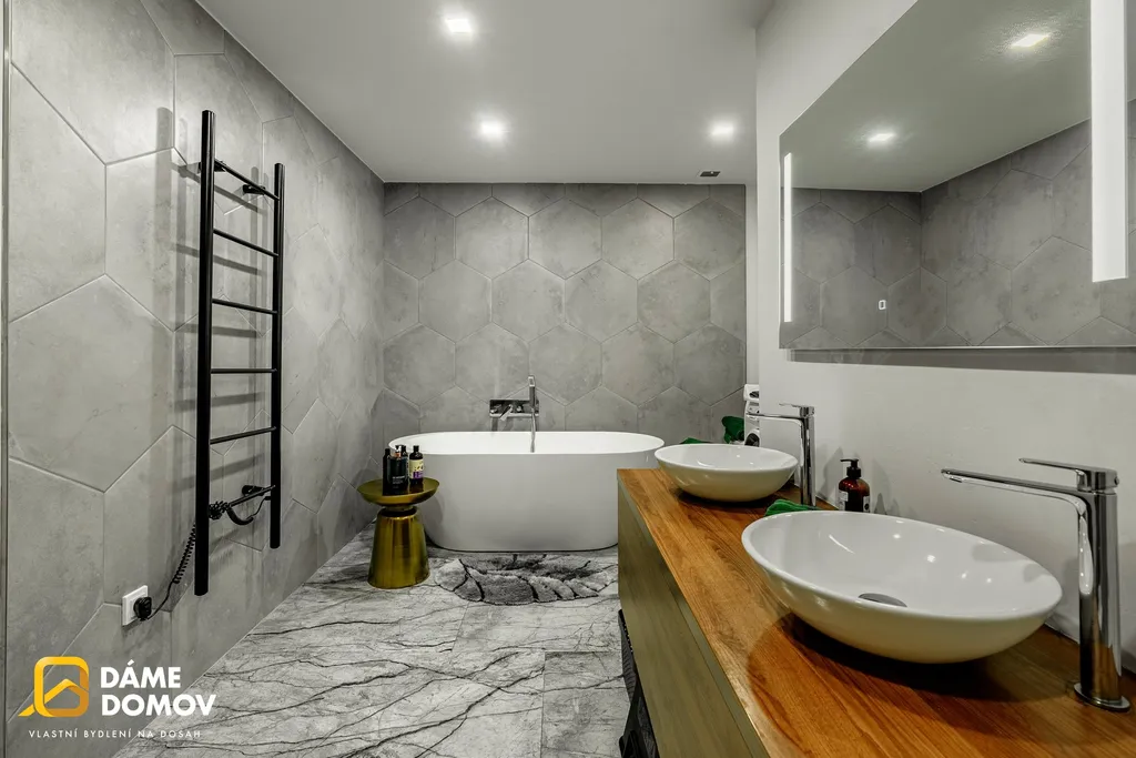 Vytápění: elektrické podlahové topení + krb s rozvody tepla do všech místností