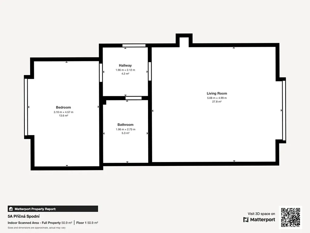Byt má užitnou plochu 51 m² a navazuje na něj prostorná terasa o výměře 10,5 m², ideální pro posezení či relax.