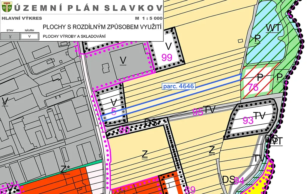 Parcelu je možné najít na katastru nemovitostí pod číslem 4646 na listu vlastnictví 197 v katastrálním území Slavkov u Uherského Brodu.