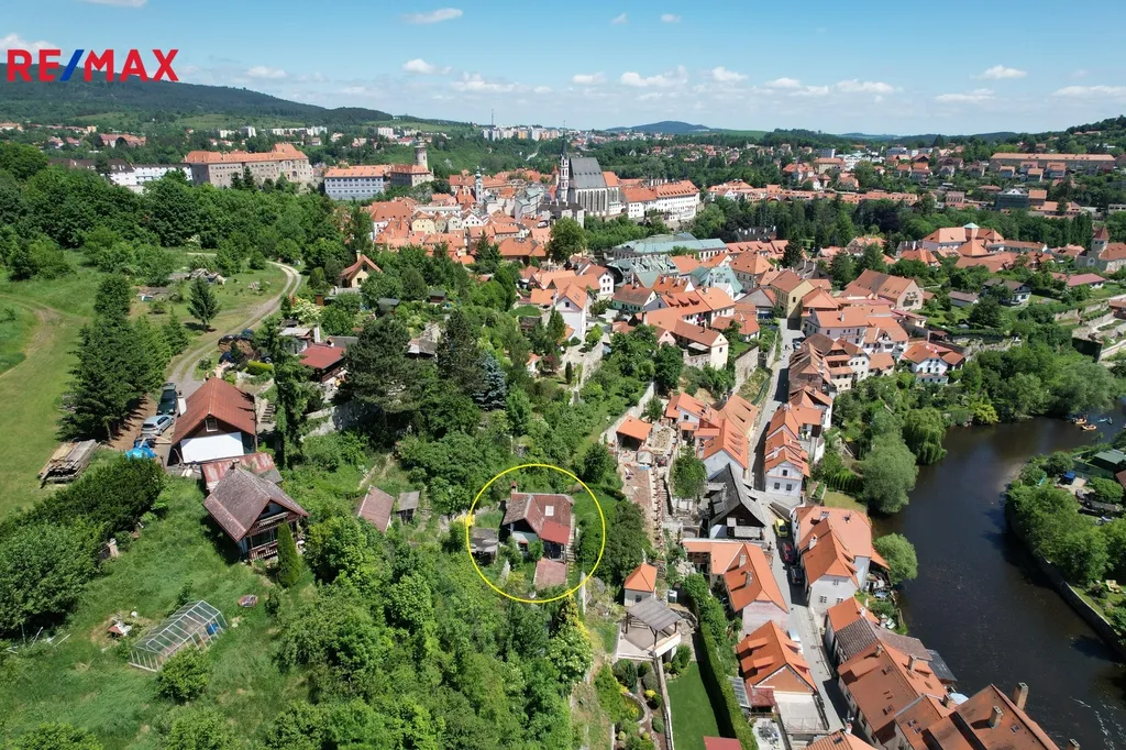 Nabízíme Vám dva pozemky s chatami na návrší nad řekou Vltavou, nedaleko historického centra města Český Krumlov. Výhled z terasy této chaty vás nikdy neomrzí. Každým pohledem z terasy ochutnáte magickou atmosféru centra Českého Krumlova vzdáleného jen pás set metrů.