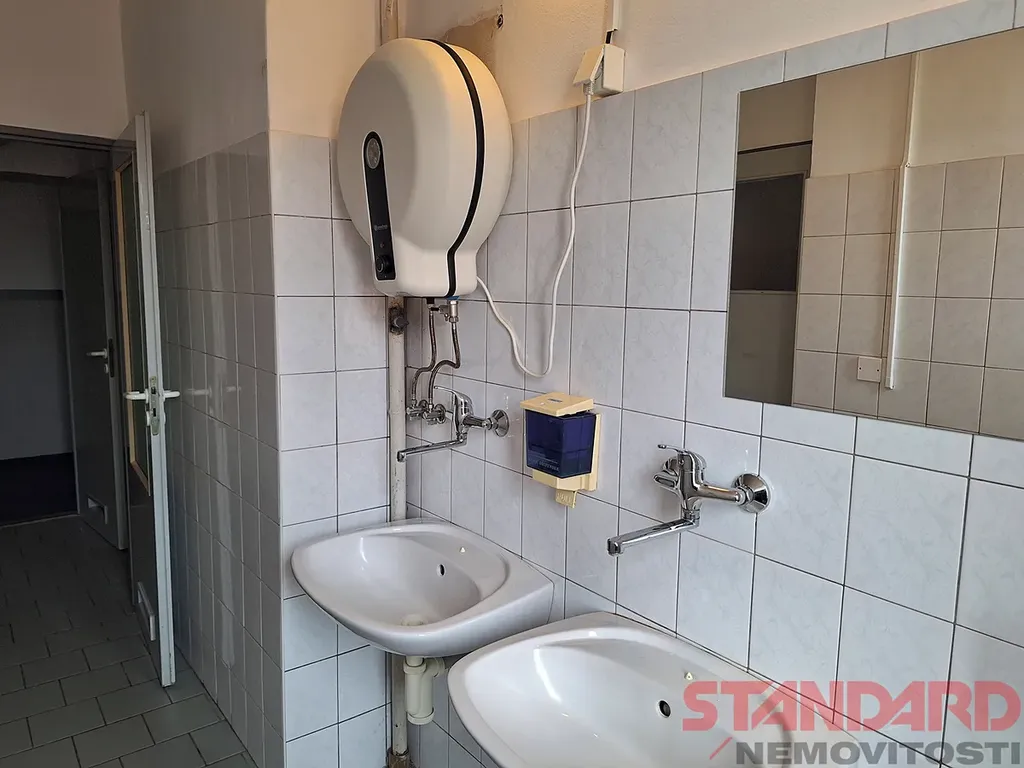 Nájemci mají k dispozici na stejném patře kuchyňku a také dámské a pánské toalety. Vytápění dálkové.
