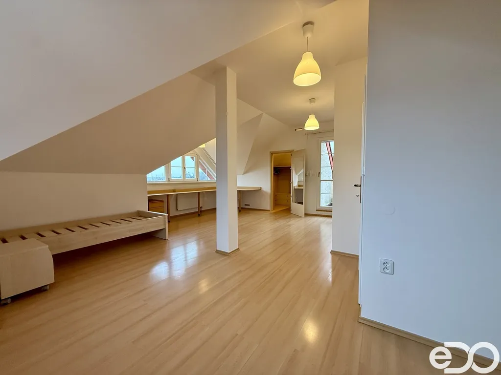 Prostorný podkrovní byt 4+kk v horním patře domu na klidném okraji Prahy, přitom s výbornou dostupností do centra.