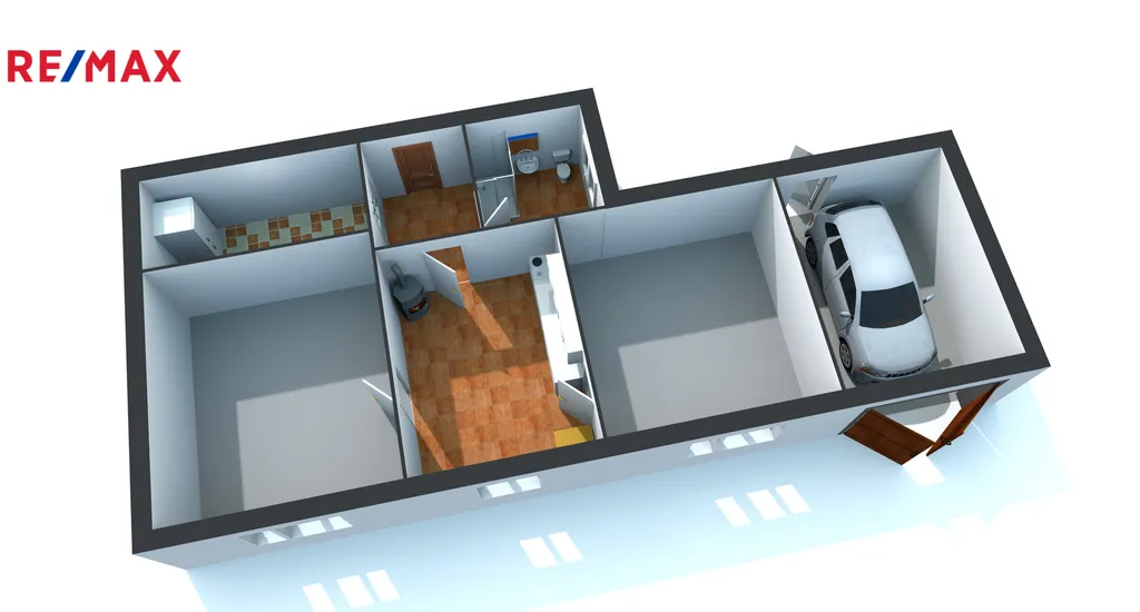Vstup do domu je zajištěn vraty - vjezdem, který můžete využít jako garáž nebo samostatnou brankou a přes dvorek vstupními dveřmi do chodby. Z chodby je vstup do koupelny se sprchovým koutem a WC nebo do kuchyně a komory/spíže. V kuchyni jsou novější krbová kamna a nová kuchyňská linka s indukční varnou deskou a elektrickou troubou. Kuchyně je dále průchozí do dvou samostatných pokojů. Vytápění a ohřev vody jsou zajištěny pomocí kombinovaného plynového kotle. Na dvorku je pergola s posezením a kůlnou.