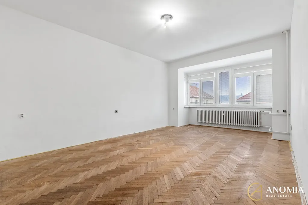 Velkou předností bytu je prostorná obytná místnost s dřevěnými parketami a několika novými plastovými okny orientovanými na východ, která zajišťují dostatek přirozeného světla. Součástí kuchyňské linky je plynový sporák a el. trouba, zároveň je k dispozici praktická komora se spíží. Koupelna je vybavena vanou a bojlerem na ohřev vody. Toaleta je řešena samostatně. K bytu náleží také sklepní kóje, poskytující další úložný prostor.