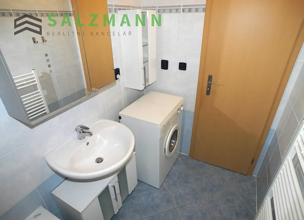 - koupelna (4m2, dlažba) - vana, umyvadlo se skříňkou, pračka, otopný žebřík