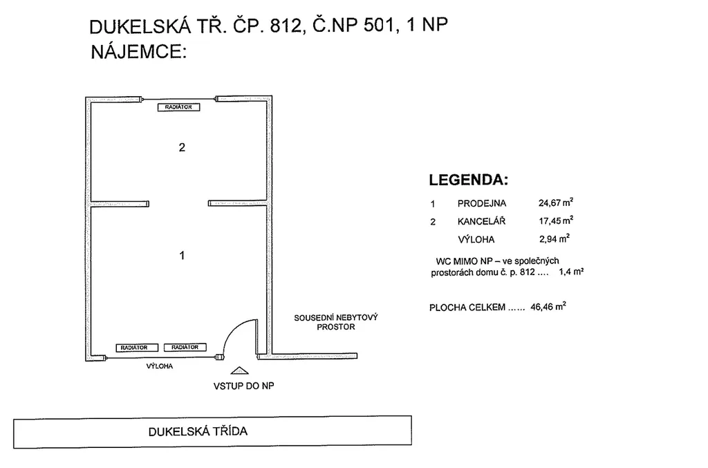 Pronájem nebytových prostor z majetku Statutárního města Hradec Králové - pronájem prostor s využitím pro prodejnu v ulici Dukelská č.p. 812 o celkové ploše 46,46 m2. K dispozici prodejna s výkladcem a kancelář. Sociální zařízení se nachází ve společných částek domu. Zavedeny inženýrské sítě, prostory jsou vytápěné dálkově. Pronájem formou výběrového řízení – nabídky nutno podat nejpozději do 2.3.2026. Bližší informace neleznete na úřední desce magistrátu nebo vám je na vyžádání zašleme.